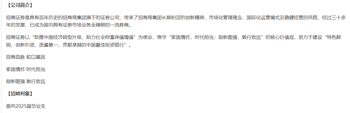 > 招商证券2025届校园招聘