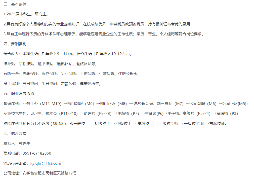 安徽开源路桥有限责任公司2025届校园招聘简章