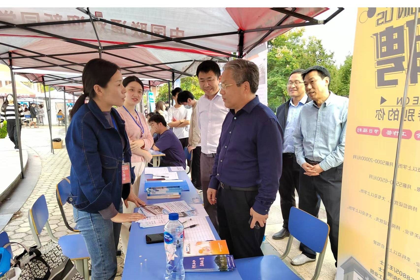 院长李子华,院党委副书记、纪委书记、副院长左方敏亲临现场指导工作,与参会企业和毕业生亲切交流。李子华关心询问毕业生的求职意向与就业进展,鼓励同学们提振信心,积极向用人单位投递简历应聘。在与多家企业HR驻足交流中,李子华一方面深入了解用人单位的招聘需求及福利待遇情况,一方面听取用人单位对学院人才培养、毕业生能力素质的评价与意见,并欢迎用人单位多来我院选聘毕业生。