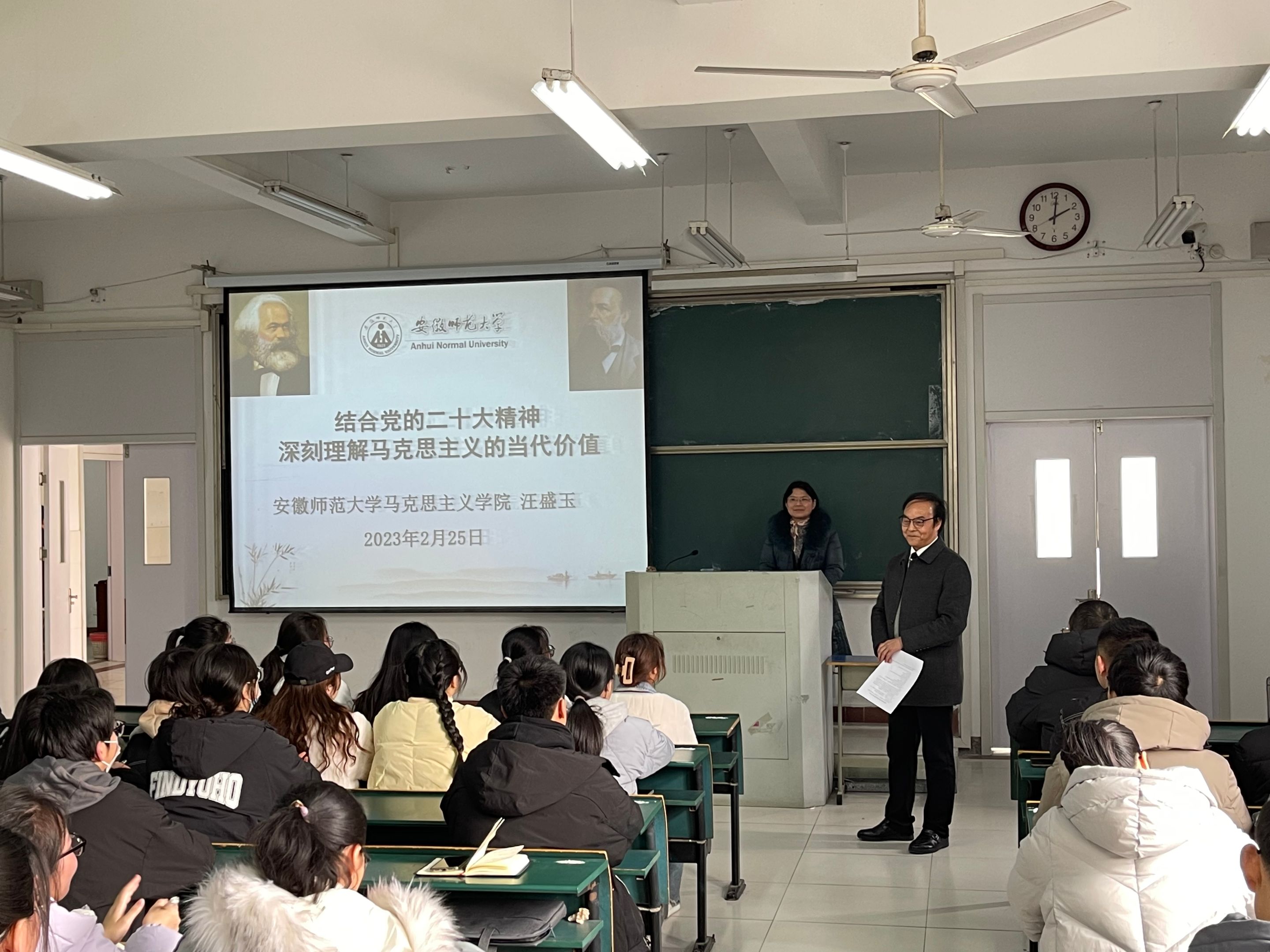 授课伊始,汪教授回顾了马克思主义的科学内涵以及马克思主义科学理论体系的主要内容,随后通过讲述党的二十大中的新论断、新观点导入本讲主题——结合党的二十大精神深刻理解马克思主义的当代价值。在课堂教学中,汪教授坚持以学生为主体,以问题为导向,通过“马克思主义过时了吗?”这一设问,启发诱导学生结合党的二十大精神理解马克思主义的当代价值,进而有助于更好掌握马克思主义的基本立场、基本观点和基本方法。