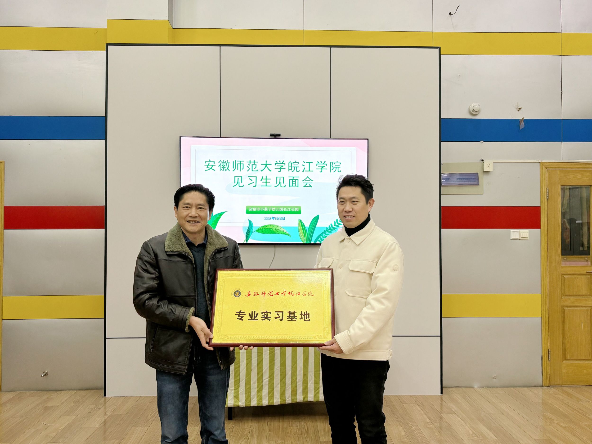 钱奇佳为实习基地进行了授牌。他在发言中高度肯定了幼儿园的办园理念和办园成果,并向教育集团对本次实习工作提供的支持表示感谢。钱奇佳叮嘱实习生们在实习期间遵守园所安排,磨练本领、夯实专业能力,把握机会进行自我学习效果的检验。