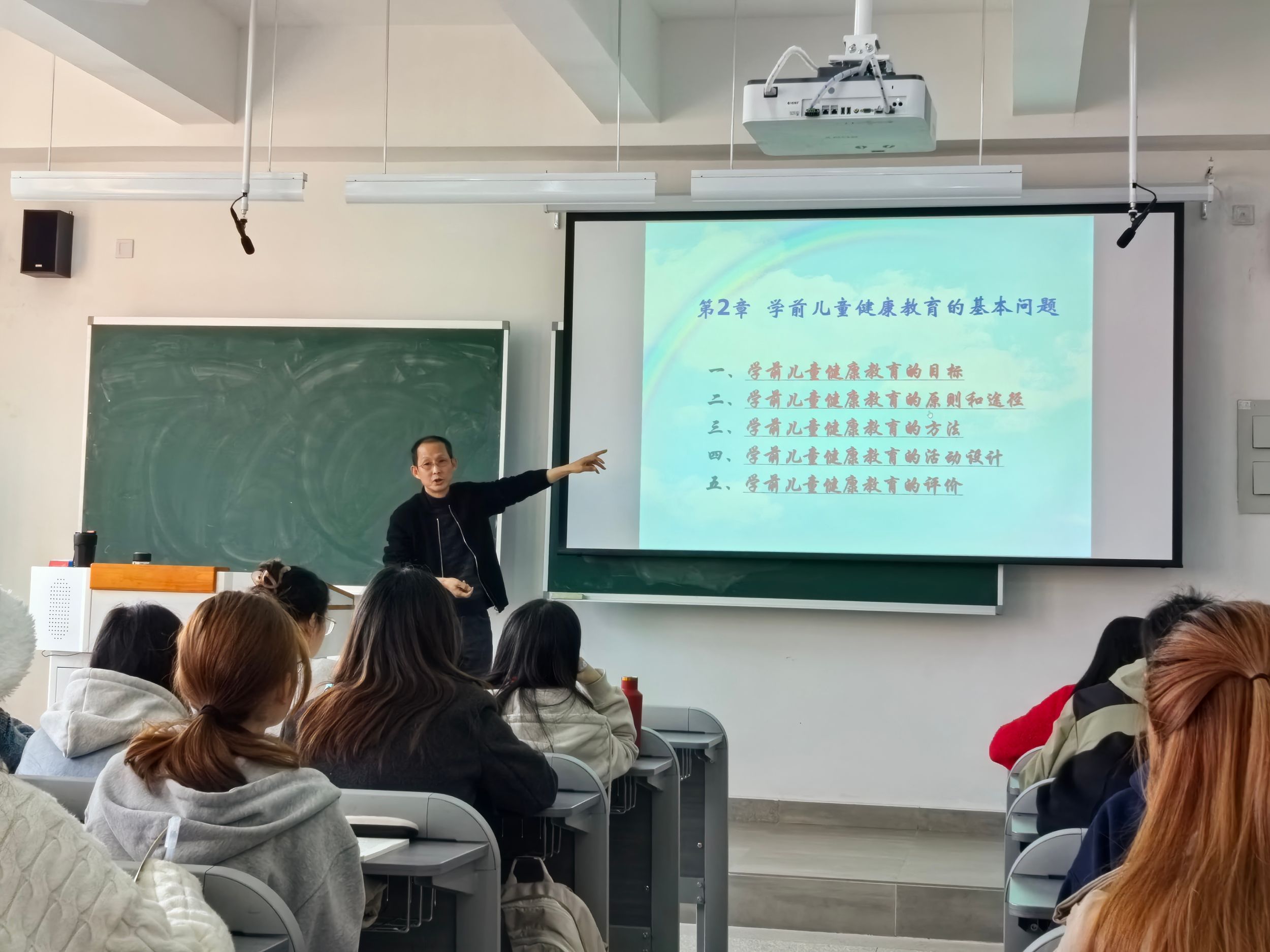 2024年3月26日下午14时,学前教育系在江北校区5号楼B406教室举办《学前儿童健康教育》课程教学公开课。本次公开课由梅养宝主讲、学前教育系主任张更立组织,授课对象为2023级学前教育专业(专升本1班)学生,全系教师参与观摩学习。