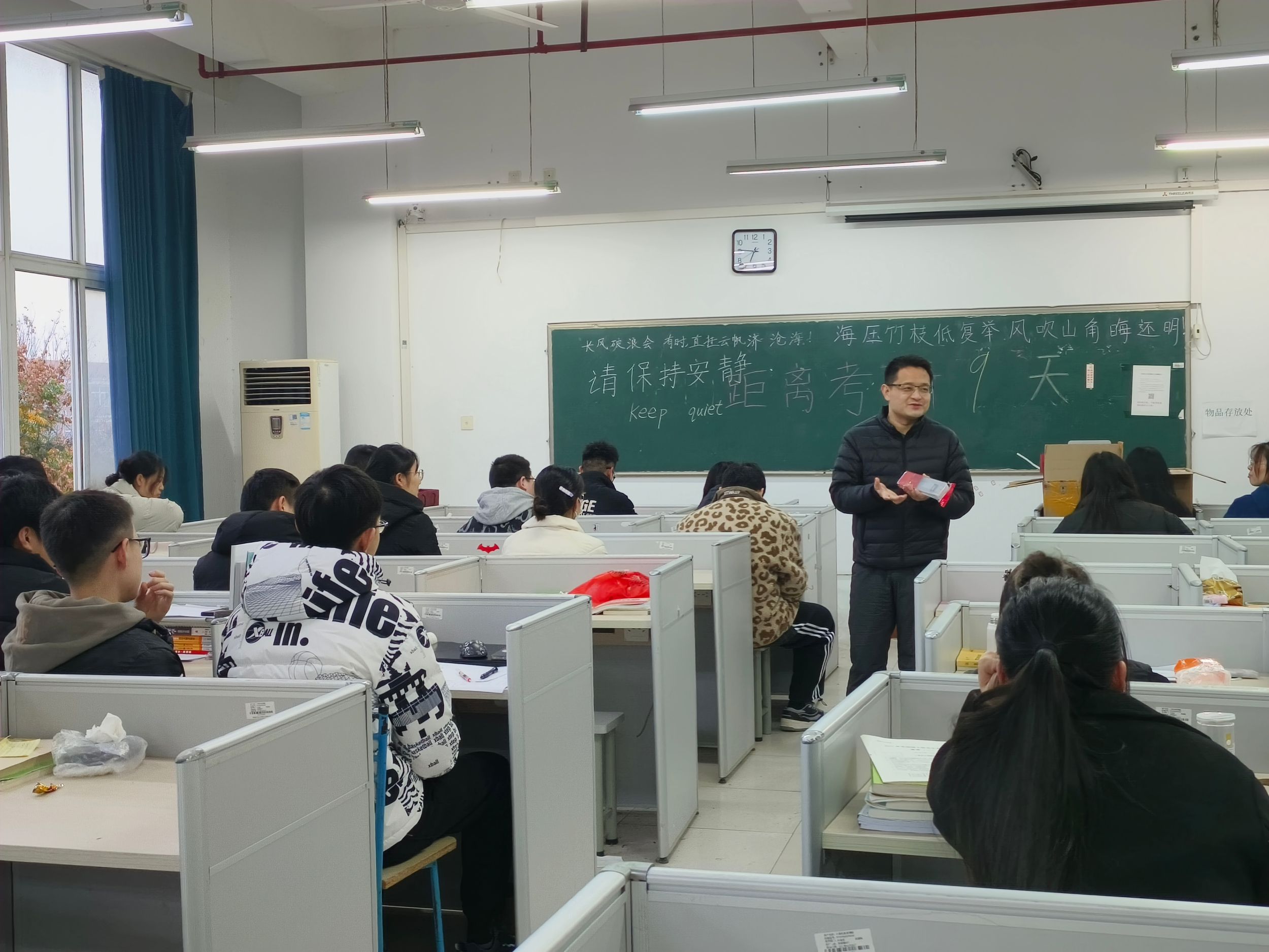 本网讯 12月14日下午,管理系2024届毕业生考研慰问活动在文津校区信息楼401顺利举行。系党总支副书记叶元龙、毕业班辅导员及2024届80余名考研学生参与了此次活动。叶元龙送上了对考研学生的关心和祝福,提醒考研学生在学习的同时注意身体健康,做好作息时间调整和压力释放,以最好的状态迎接考试,希望同学们充满信心,积极应考,坚持到底,祝愿大家都能成功上岸。