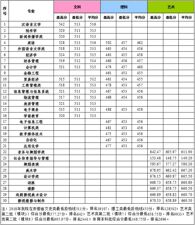 > 2018各专业在安徽省录取分数线一览表