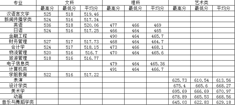 2020各专业在安徽省录取分数线一览表
