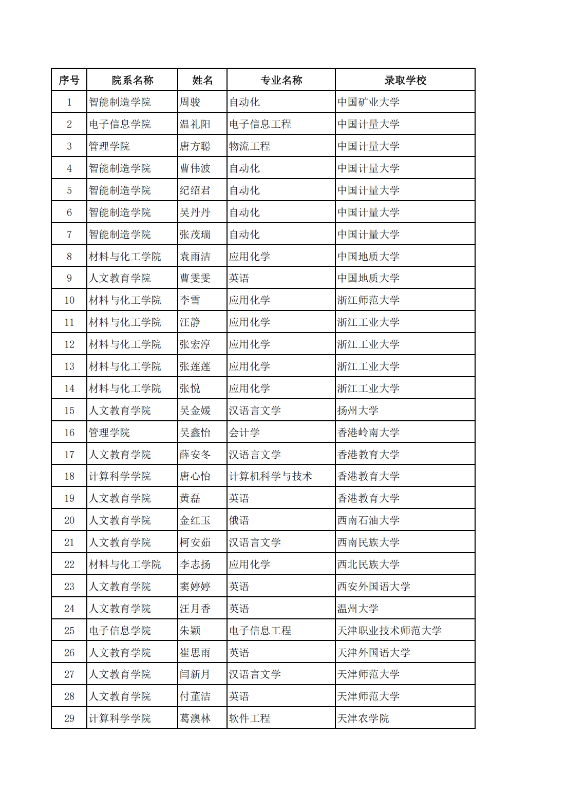 > 2025届毕业生考研录取情况一览表
